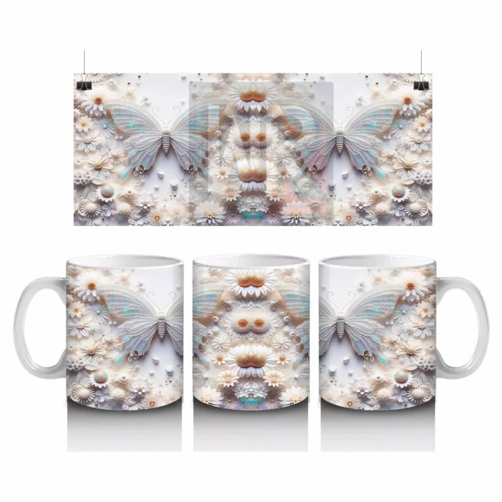 Pastel Renkli Rölyef Kelebek Deseni – Baskılı Kahve Kupası