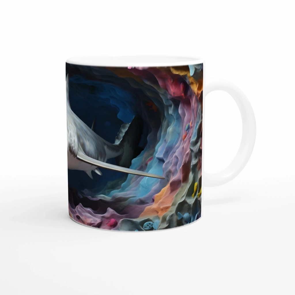 Pastel Tonlarda Mercanlar Arasında Köpekbalığı Su Altı Temalı Kupa Bardak