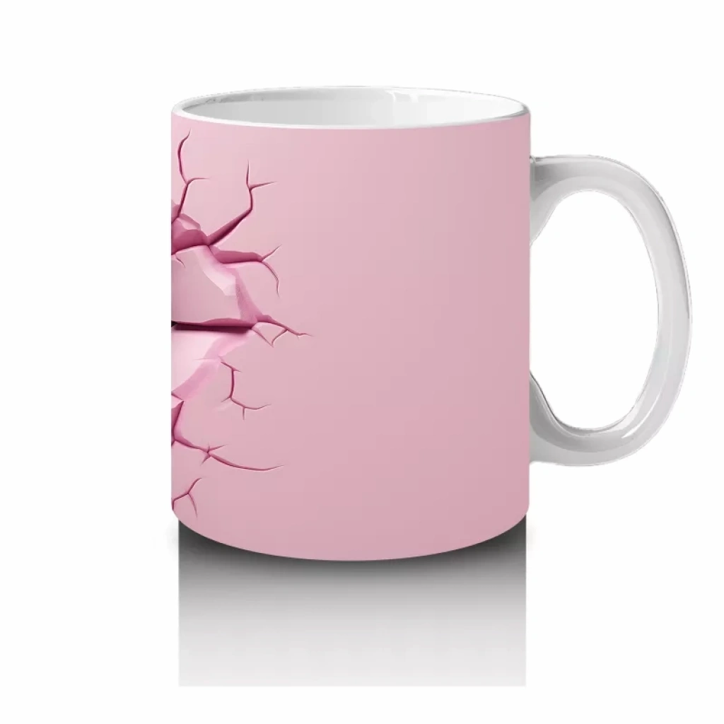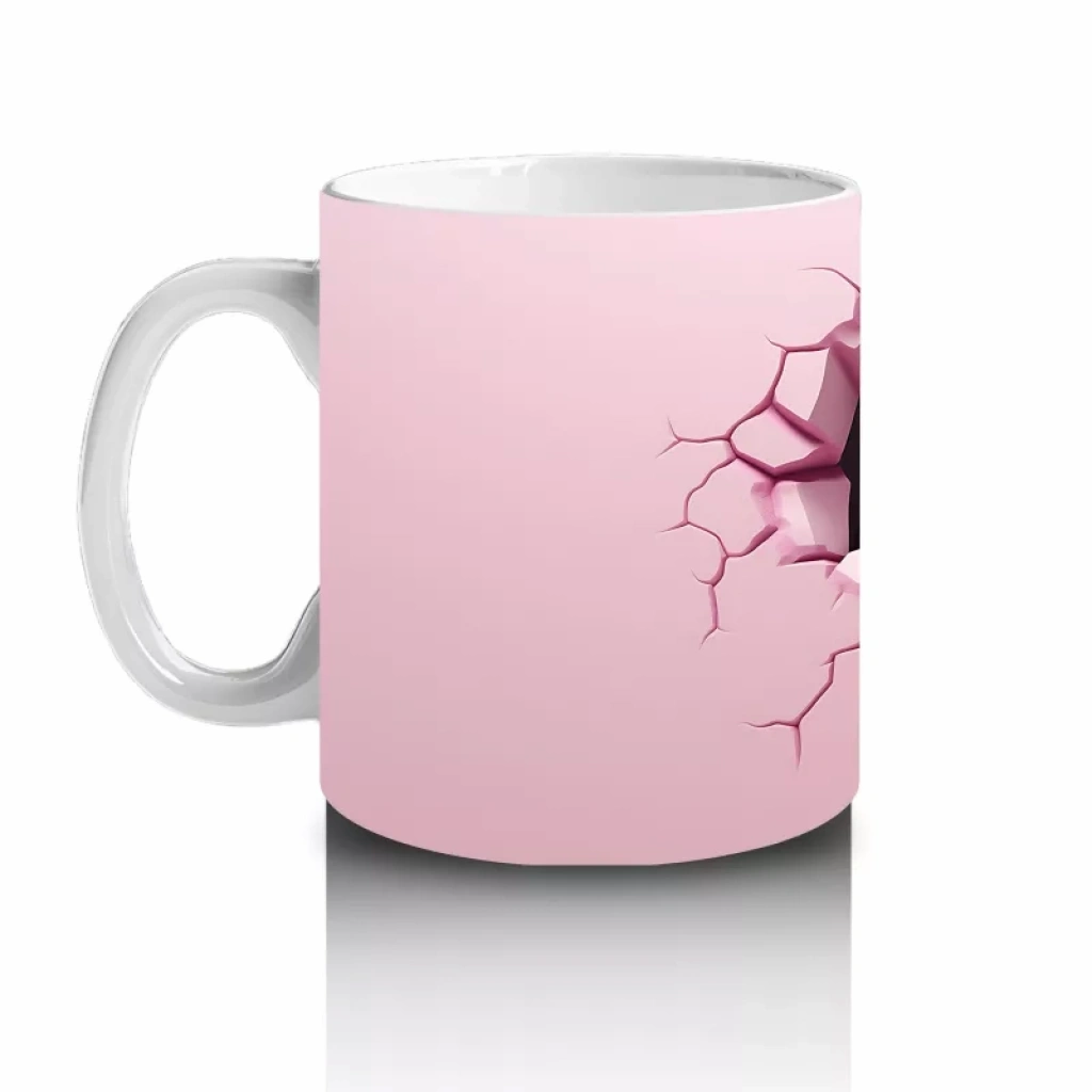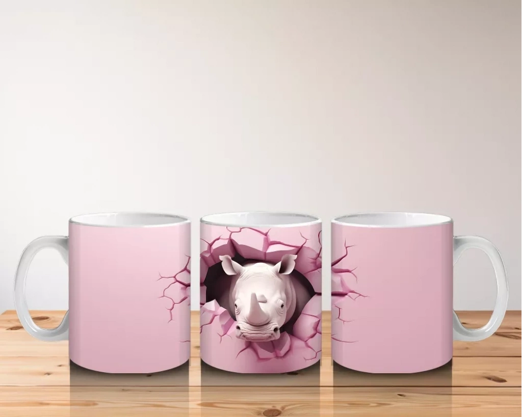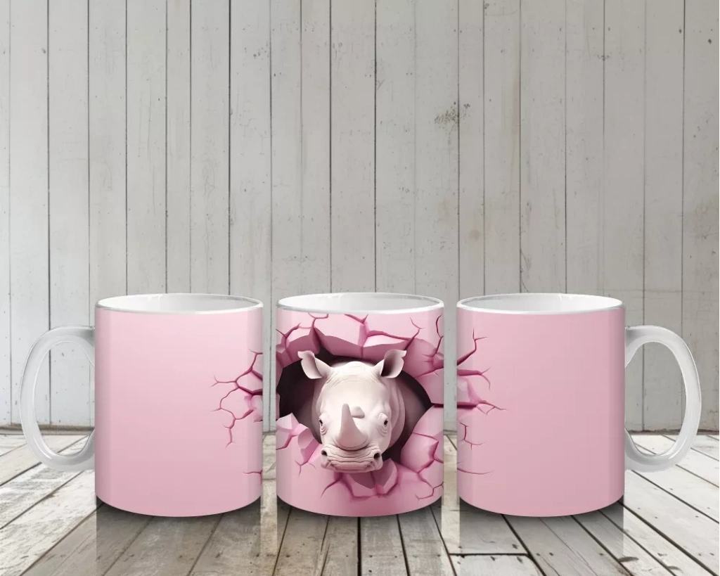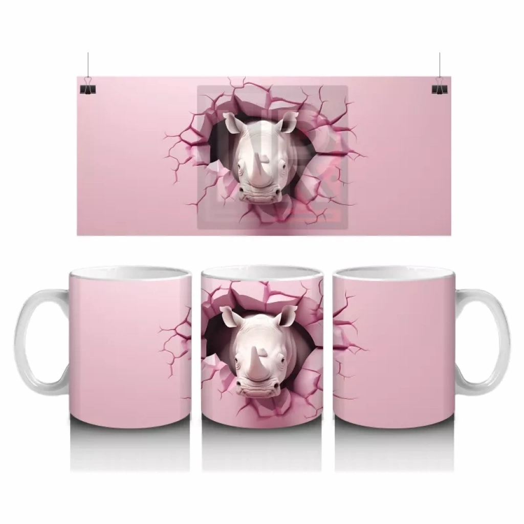 Pembe Çatlak Duvar Arasında Gergedan İllüstrasyonu – Baskılı Kahve Kupası