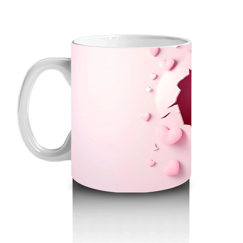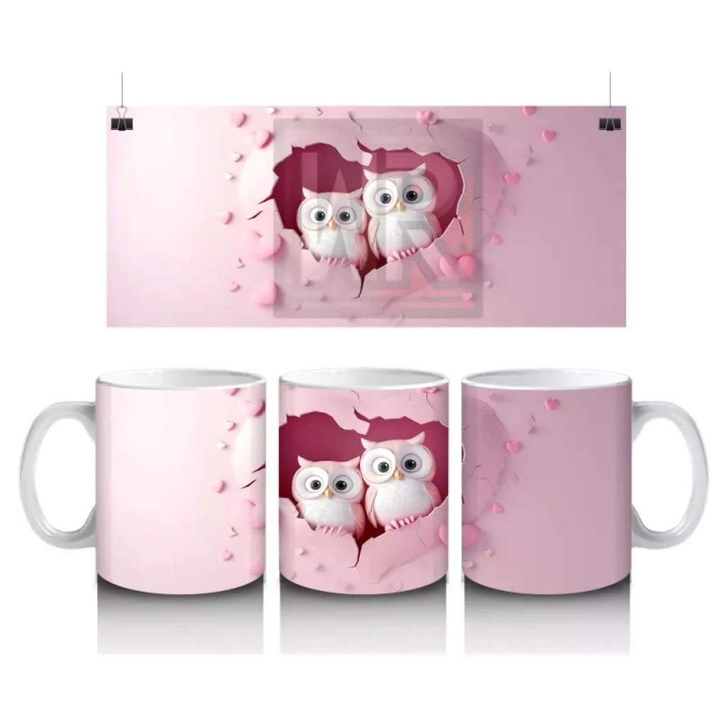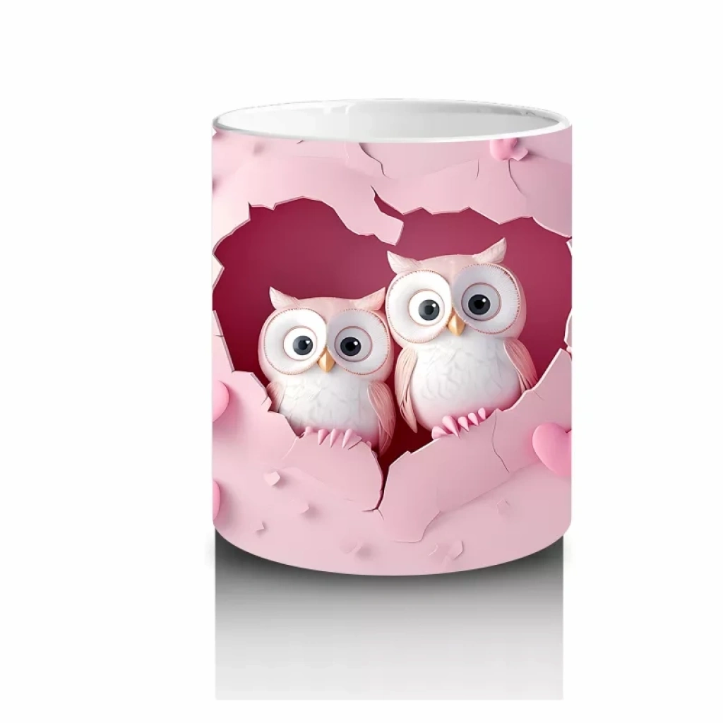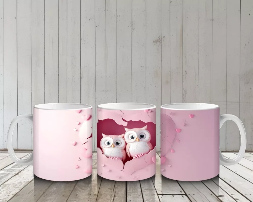 Pembe Çatlak Zeminde Yan Yana Oturan Sevimli Baykuşlar – Baskılı Kahve Kupası