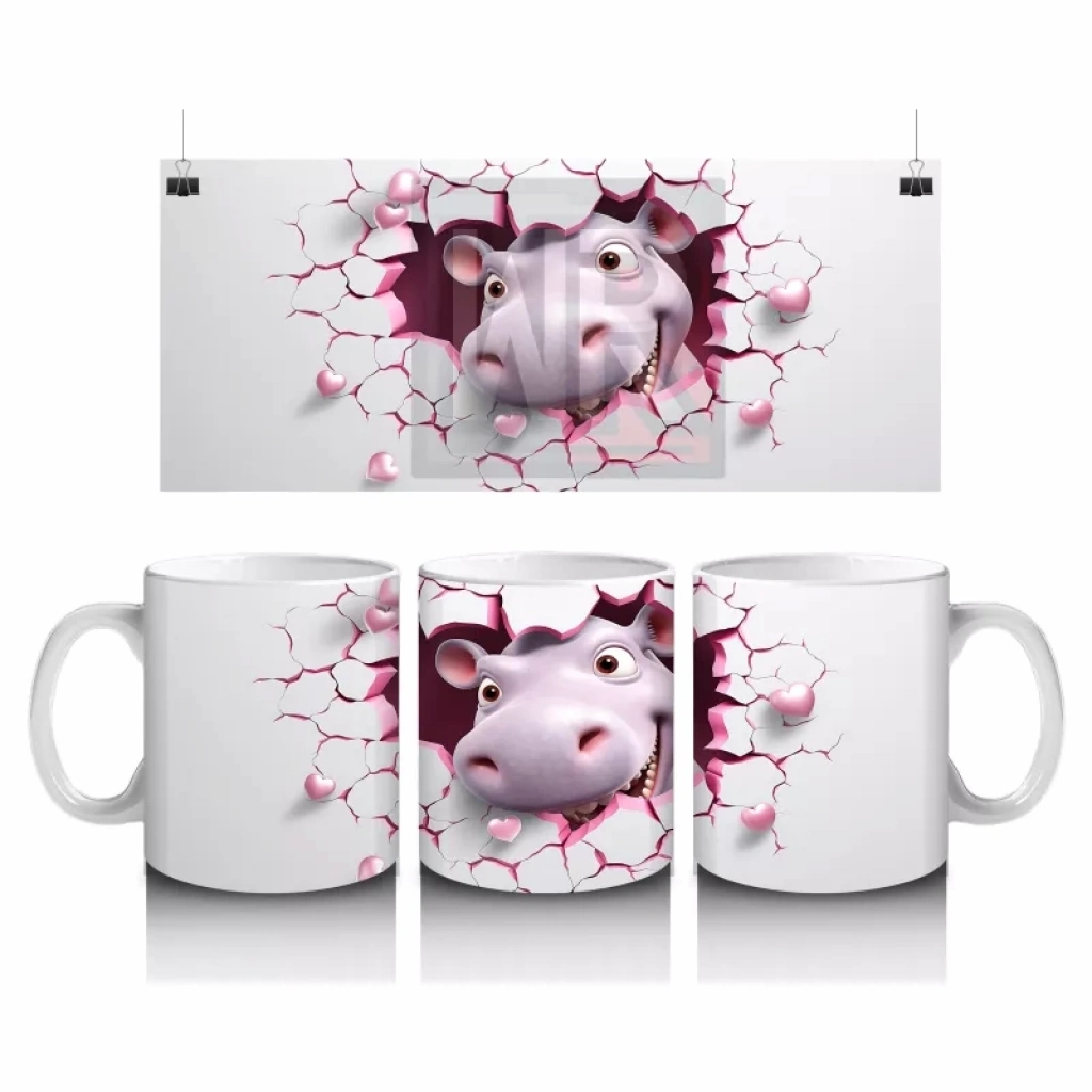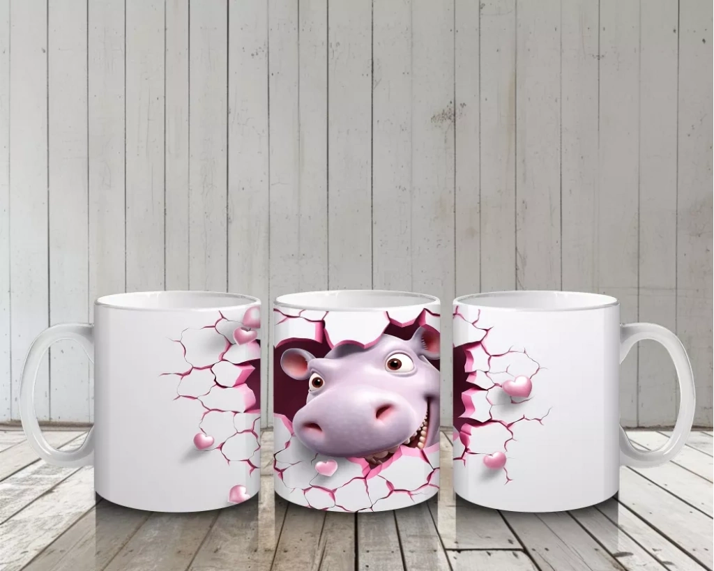 Pembe Çatlak Zeminden Bakan Sevimli Su Aygırı – Baskılı Kahve Kupası