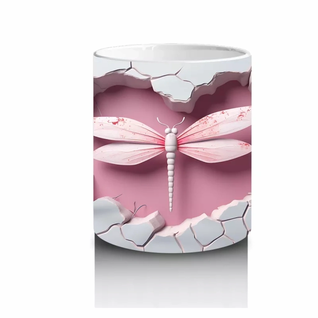 Pembe Çatlakta Simetrik Yusufçuk Deseni – Baskılı Kahve Kupası