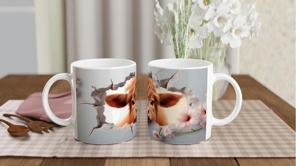 Pembe Çiçekler Arasında Beliren Sevimli İnek Baskılı Kupa Bardak, yumuşak renk geçişleri ve detaylı illüstrasyonuyla doğayı seven herkesin favorisi olmaya aday. Hem şirin hem pastoral bir atmosfer sunan özel bir tasarım.