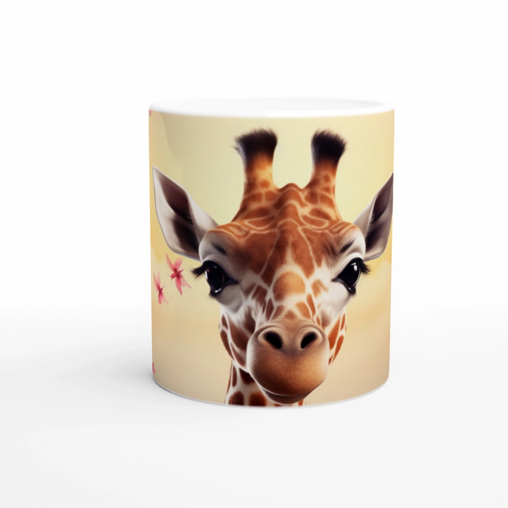 Pembe Çiçekler Arasında Zürafa Temalı Baskılı Kupa Bardak, uzun kirpikli sevimli zürafa tasarımıyla hem çocuklara hem de içindeki çocuğu yaşatanlara hitap ediyor. Pozitif enerji yayan bu kupa, her yudumda gülümsetiyor.