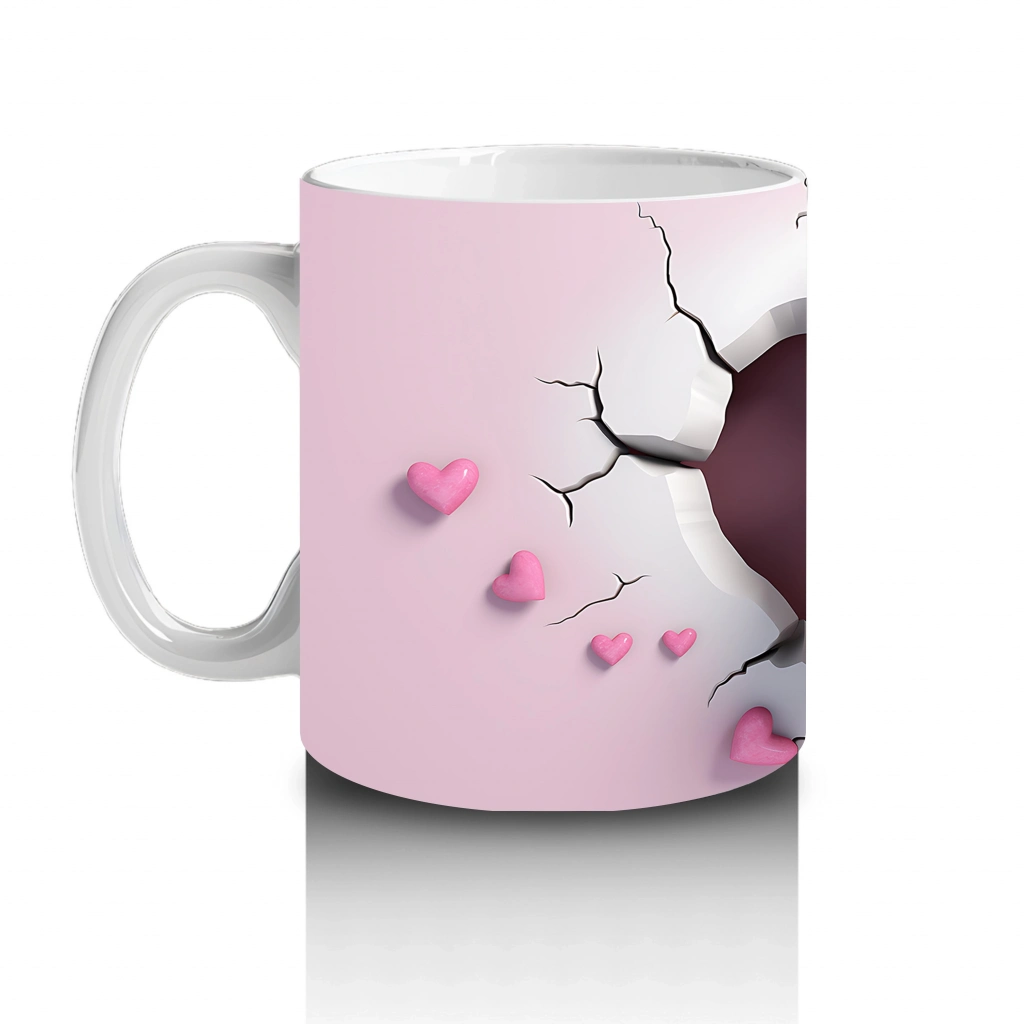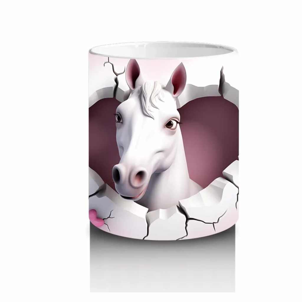Pembe Duvar Arasında Romantik At Figürü – Baskılı Kahve Kupası