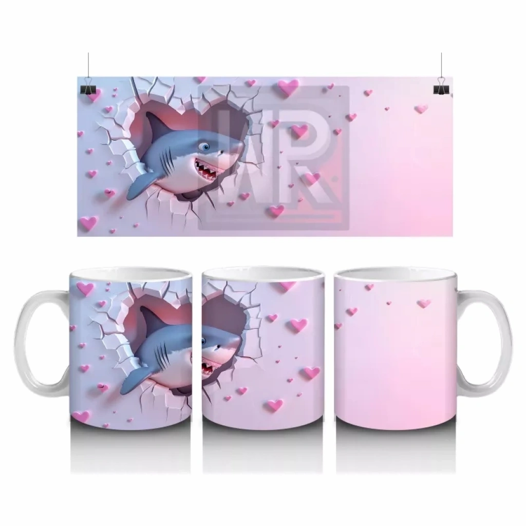 Pembe Kalpler Arasında Uçan Mavi Köpek Balığı – Baskılı Kahve Kupası