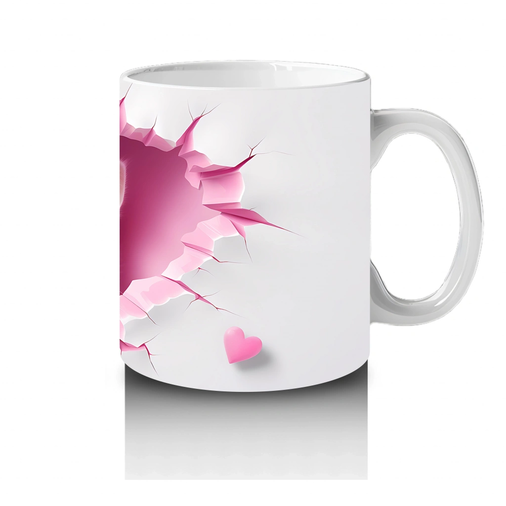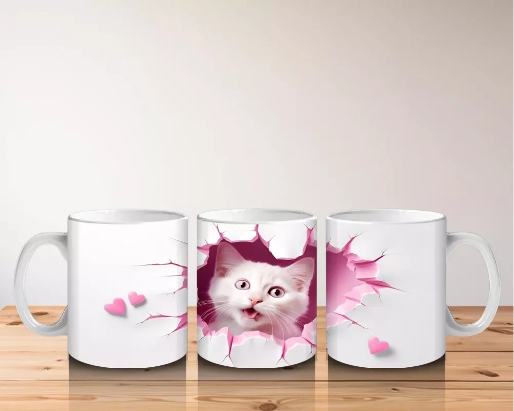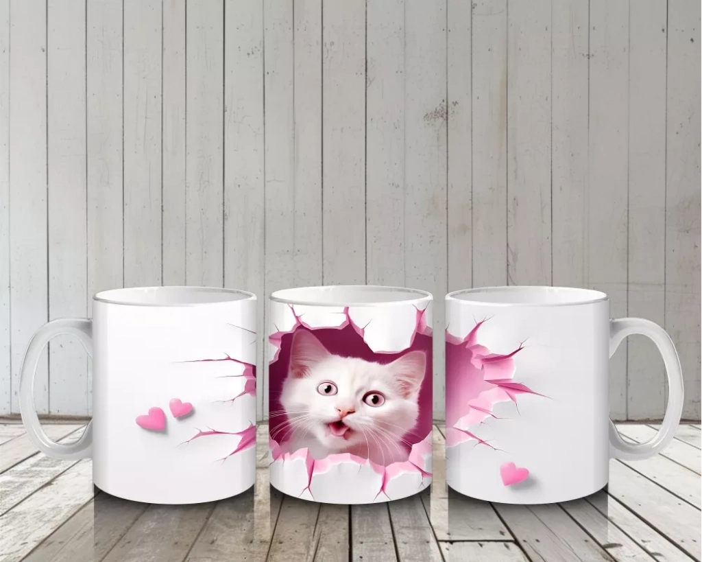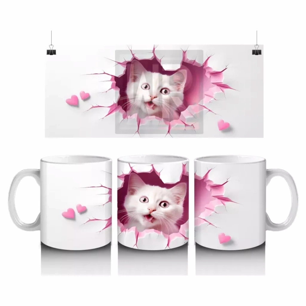 Pembe Kalplerle Süslenmiş Tatlı Kedi – Baskılı Kahve Kupası
