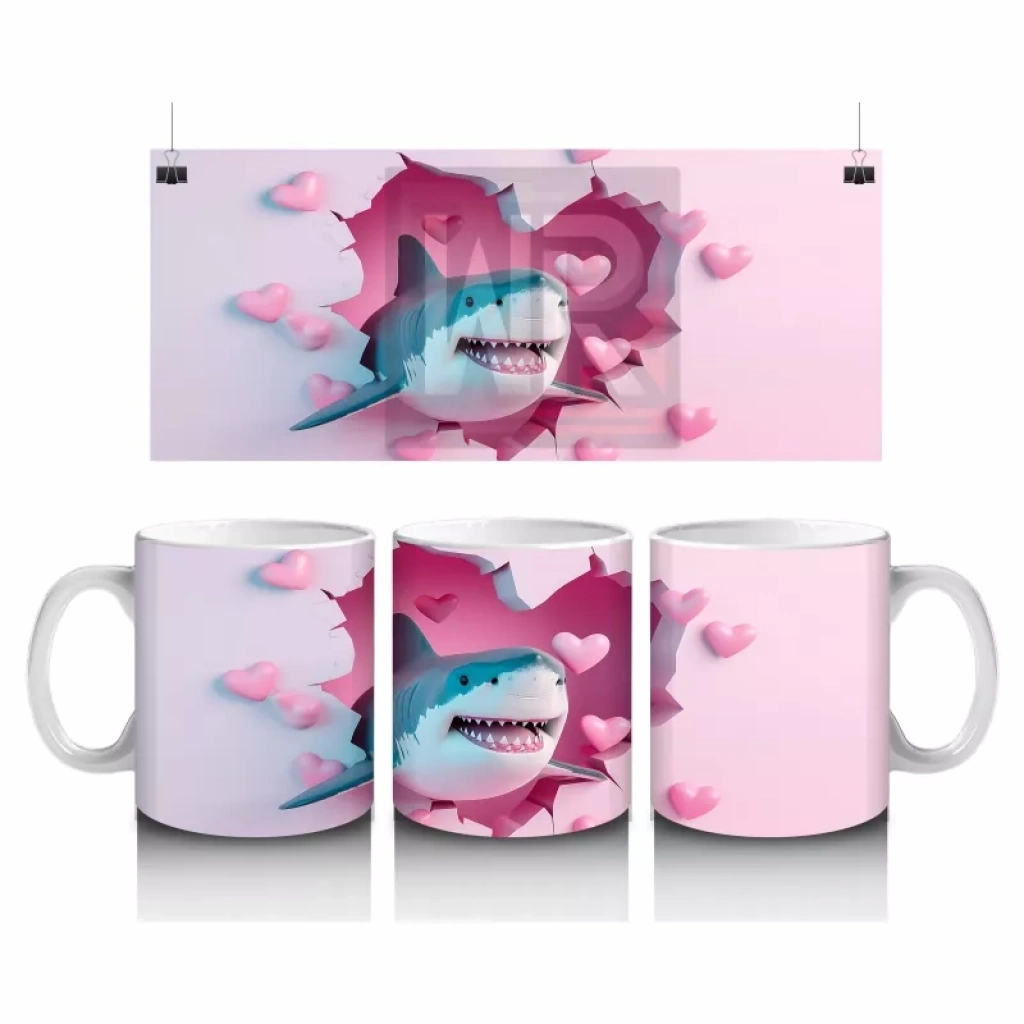 Pembe kalplerle süslenmiş çatlak içinde uçuyormuş gibi beliren bu köpek balığı, gerçeküstü ve komik bir tasarım sunuyor. Mizah dolu hediye alternatifleri arasında fark yaratır.