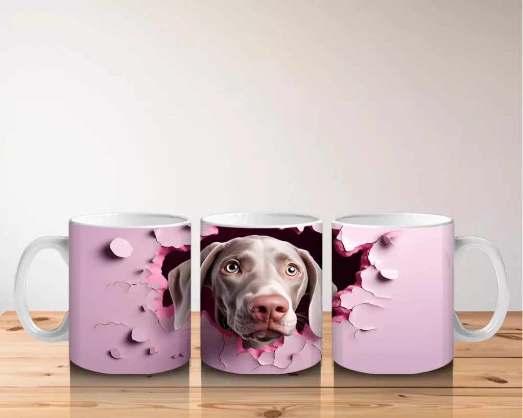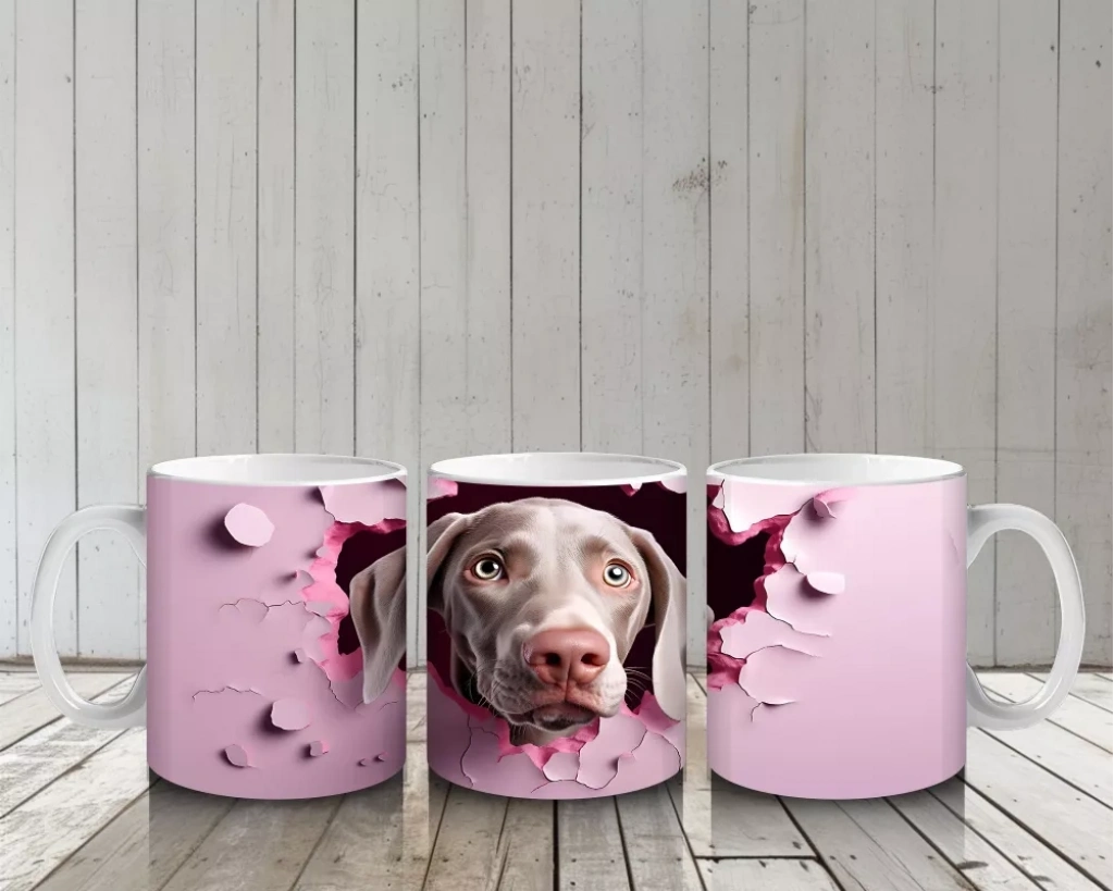 Pembe Kalpli Duvar Önünde Sevimli Köpek – Baskılı Kahve Kupası
