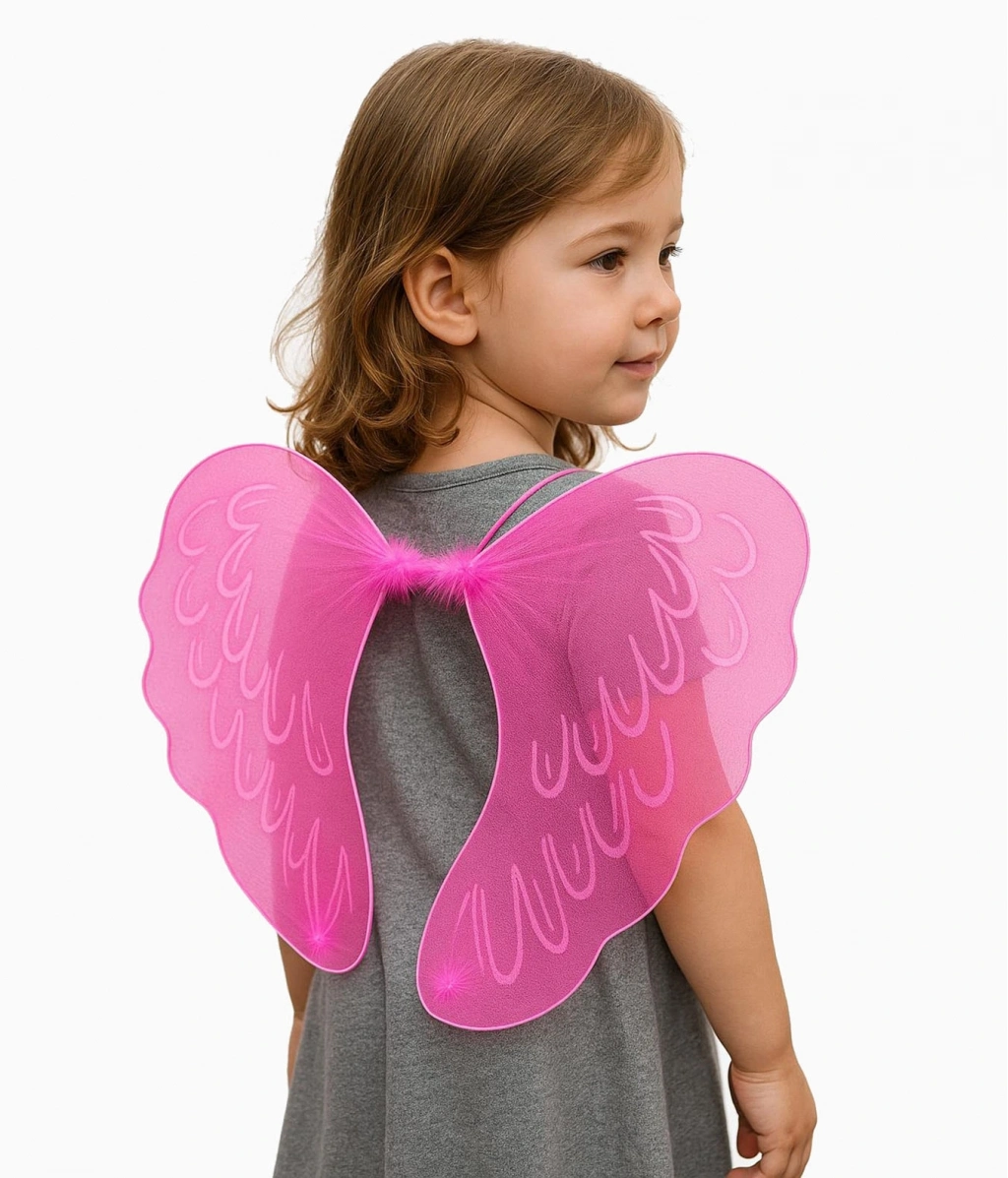 Pembe Rüyalarınızın Kanatları: Pembe Renk Ortası Pembe Tüylü Tül Peri Kanadı 40x50 cm