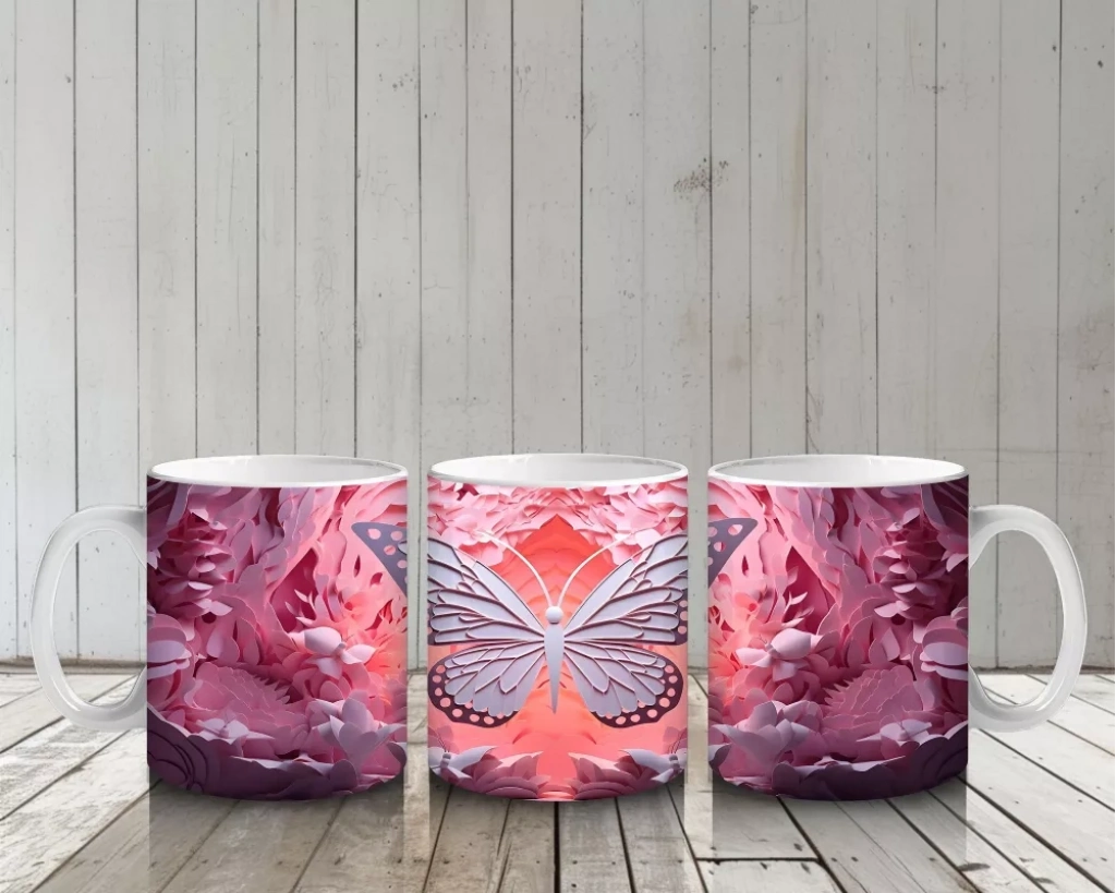 Pembe Rölyef Dokulu Parlayan Kelebek – Baskılı Kahve Kupası