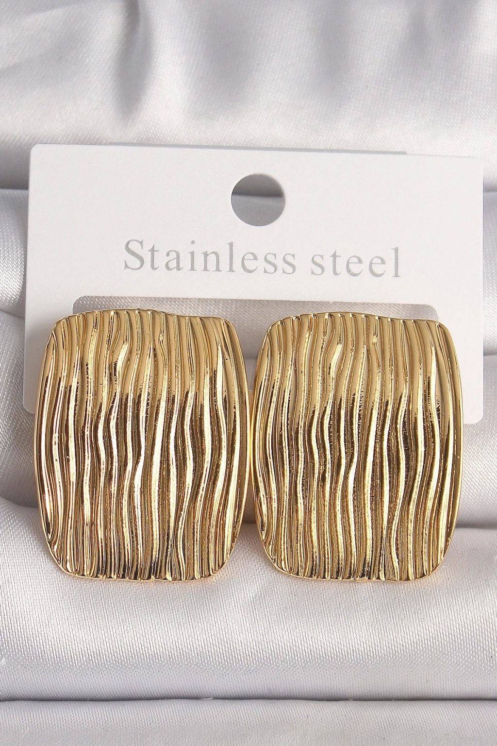 Pirinç Gold Renk İşlemeli Kare Plaka Model Kadın Küpe