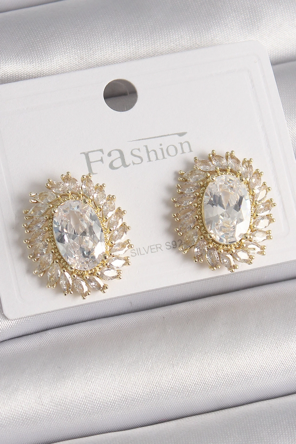 Pirinç Gold Renk Zirkon Taşlı Kadın Küpe