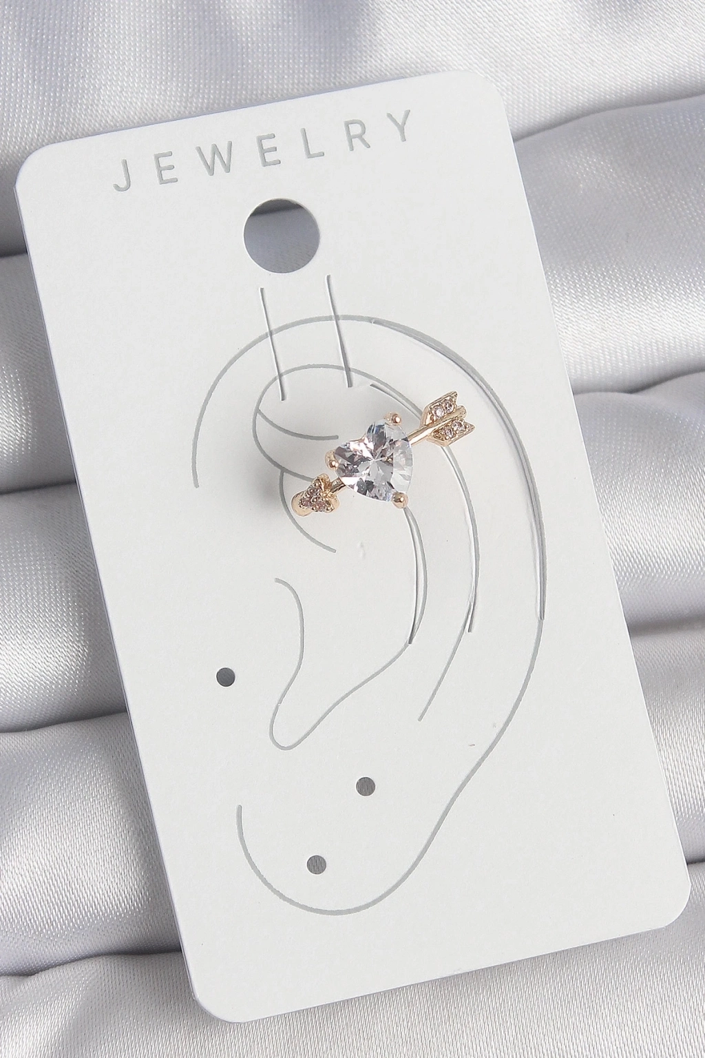Pirinç Gold Renk Zirkon Taşlı Kalp Ok Model Kadın Kıkırdak Küpe