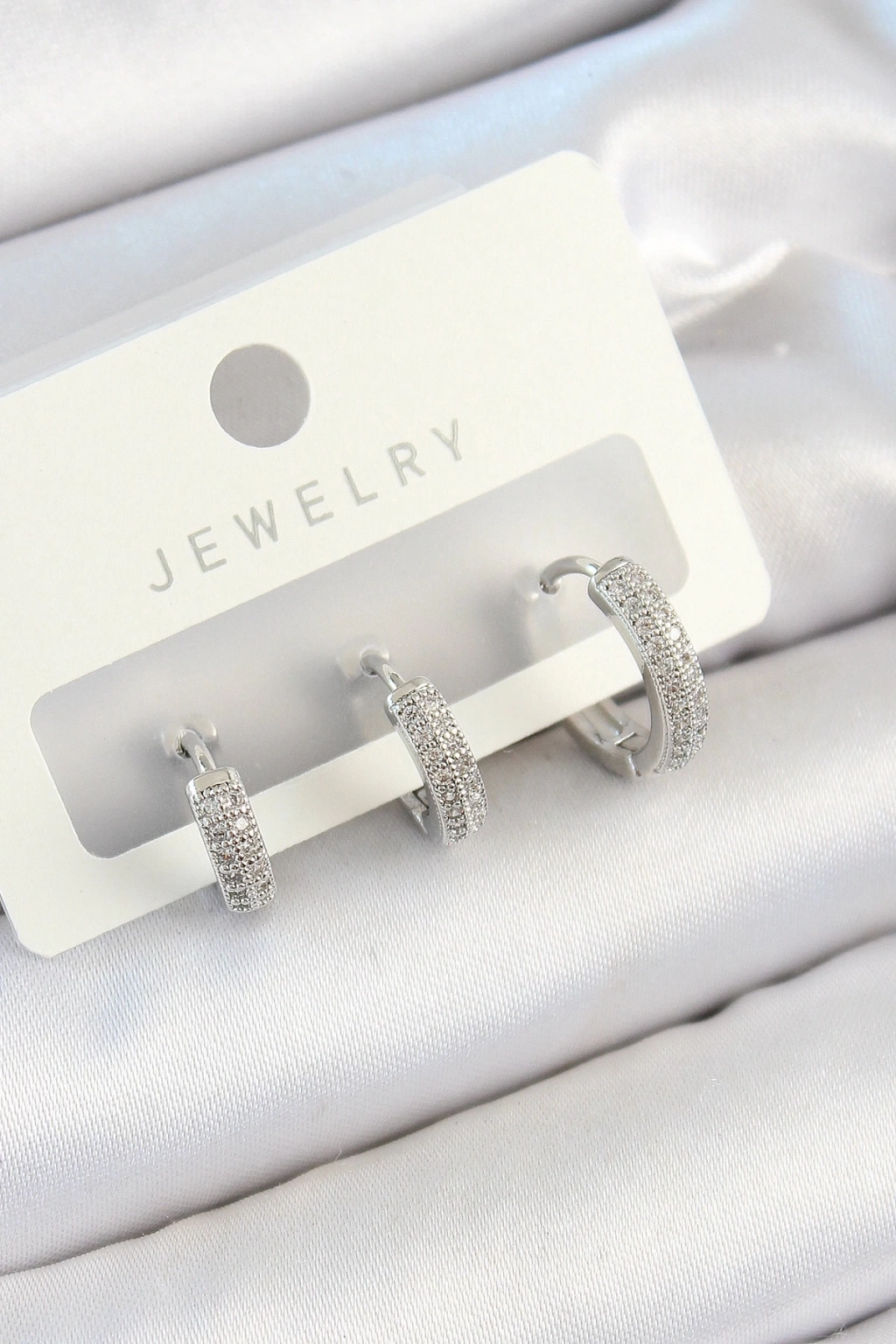 Pirinç Zirkon Taşlı Halka Model Gümüş Renk 3'lü Çift Kadın Küpe Set