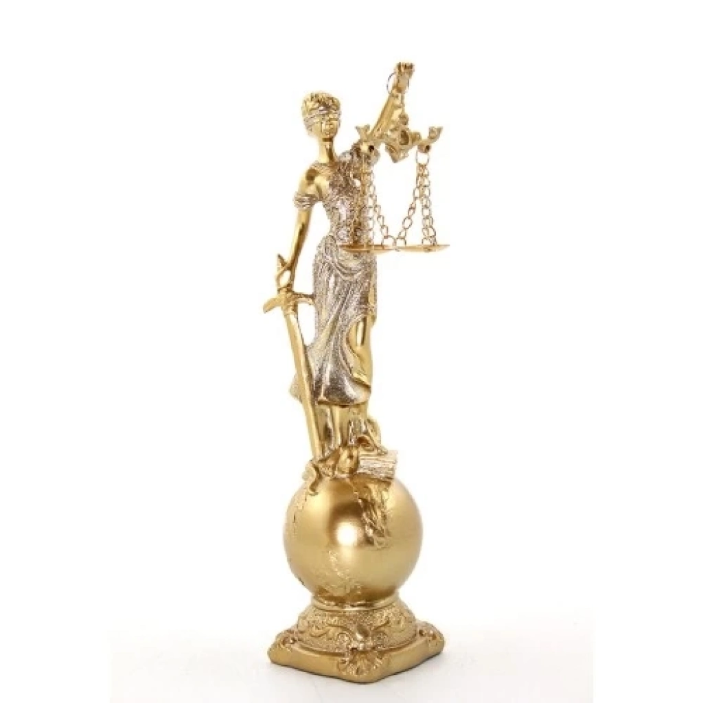 POLYESTER ADALET BİBLOSU MODEL 1Ürün ÖzellikleriPolyester Adalet Biblosu, adaletin simgesi olan kanatlı terazi ve kılıç figürünü barındıran şık bir tasarımdır. Alt kısmında yer alan dünya figürüyle anlamını pekiştiren bu biblo, 30x12 cm boyutlarındadır. Altın ve gümüş tonlarında zarif bir işçilikle üretilen figür, ev veya ofis dekorasyonlarına anlamlı bir dokunuş ekler. Yüksek kaliteli polyester malzeme ile üretilen bu figür, dayanıklılığı ve estetiğiyle dikkat çeker.Paket İçeriği1 Adet Polyester Adalet Biblosu Model 1