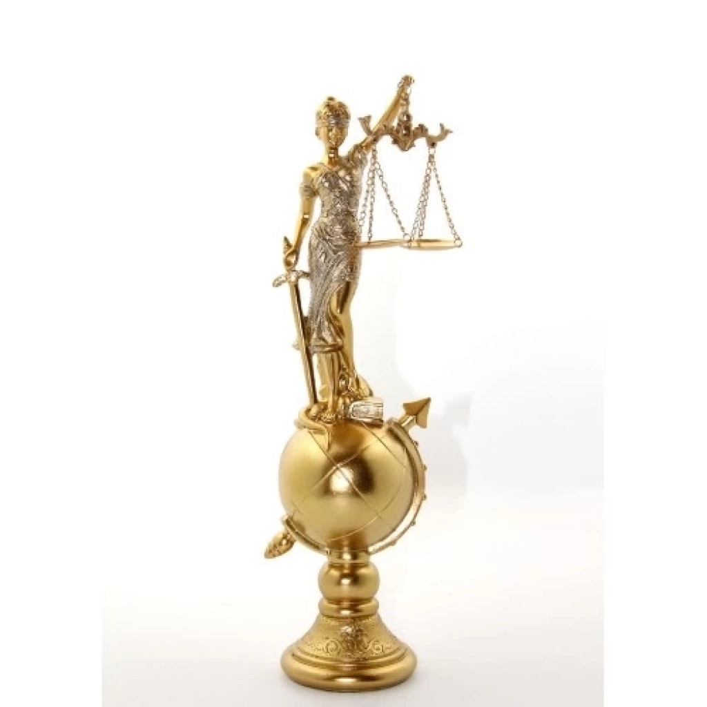 POLYESTER DÜNYA KÜRE ÜZERİNDE ADALET BİBLOSU MODEL 2Ürün ÖzellikleriPolyester Dünya Küre Üzerinde Adalet Biblosu Model 2, adaletin sembolü olarak tasarlanmış bir figürdür. Gözleri bağlı bir kadın figürü, terazi ve kılıç ile birlikte dünya küresinin üzerinde yer alır. Altın ve gümüş detaylarla işlenmiş bu zarif figür, adaletin simgesini görsel olarak sunarken, şıklık ve anlam taşır. Yüksek kaliteli polyester malzeme ile üretilmiş olup, estetik tasarımı ile ofisler veya evler için mükemmel bir dekorasyon öğesidir.Paket İçeriği1 Adet Polyester Dünya Küre Üzerinde Adalet Biblosu Model 2