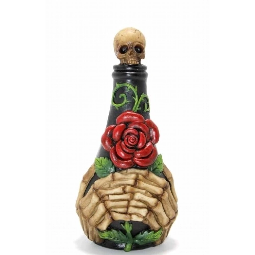 POLYESTER KURUKAFA FİGÜRÜÜrün ÖzellikleriPolyester Kurukafa Figürü, şişe şeklinde tasarlanmış, üzerinde kurukafa, güller ve yapraklar desenleri bulunan şık ve dikkat çekici bir dekoratif üründür. Polyester malzeme ile üretilmiş olup, dayanıklı ve uzun ömürlüdür. Kurukafa ve doğa unsurlarını bir araya getiren bu figür, gizemli ve gotik bir atmosfer yaratır. Güller ve yapraklar gibi detaylarla zarif bir şekilde tasarlanmış olan bu ürün, özellikle gothic ve gotik tarz dekorasyonlarda mükemmel bir tamamlayıcıdır.Paket İçeriği1 adet Polyester Kurukafa Figürü
