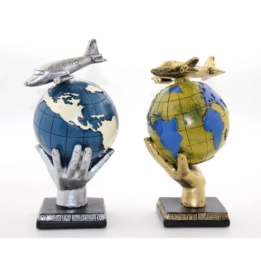 POLYESTER UÇAKLI DÜNYA KÜREÜrün ÖzellikleriPolyester Uçaklı Dünya Küre, dünya haritası üzerine yerleştirilmiş bir uçak figürüyle tasarlanmış şık bir dekoratif üründür. Dünya küresinin üzerine uçak yerleştirilmiş olup, her iki modelde de farklı renk seçenekleri ve tasarımlar sunulmaktadır. Yüksek kaliteli polyester malzeme kullanılarak üretilen bu figür, modern ve estetik bir atmosfer yaratır. Küre ve uçak figürleri arasındaki ilişki, seyahat ve keşif temasını güçlü bir şekilde vurgular.Not: Ürün farklı renklerde mevcuttur ve stok durumuna göre karışık gönderilmektedir.Paket İçeriği1 adet Polyester Uçaklı Dünya Küre