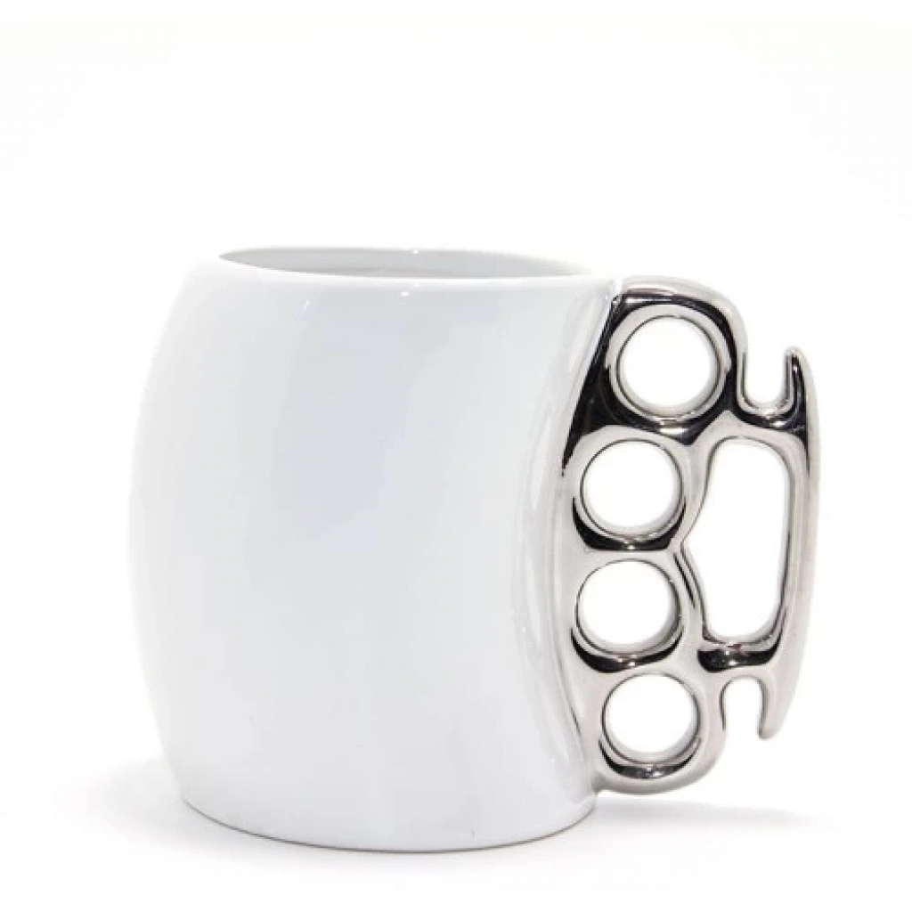 Porselen Muşta Tasarımlı Kupa Bardak Gümüş Renk