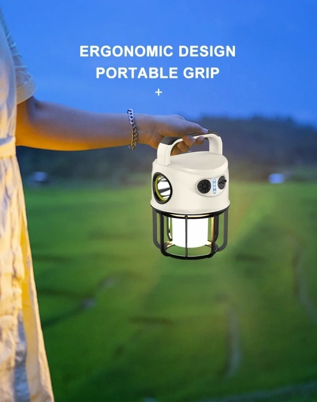 LİTYUM BATARYALI, POWERBANK ÖZELLİKLİ, ŞARJ GÖSTERGELİ, 3 FONKSİYONLU, SARI VE BEYAZ IŞIK  YANABİLEN KAMP LAMBASI