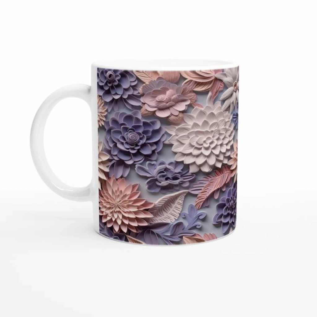 Katmanlı çiçek yaprakları, spiral gül motifleri ve pastel yaprak detaylarıyla bezenmiş bu özel kupa bardak, estetik sunumlar ve huzur veren renk arayanlar için mükemmel bir seçenek.