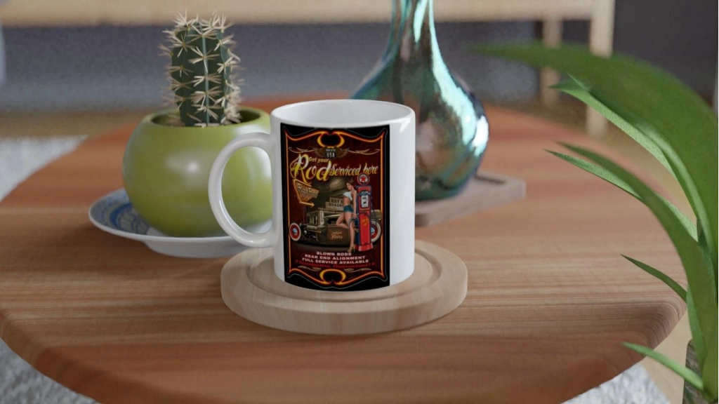 Klasik garaj atmosferini yansıtan bu rat rod baskılı kupa bardak, farklı ve dikkat çekici tasarımıyla koleksiyonluk bir parça.