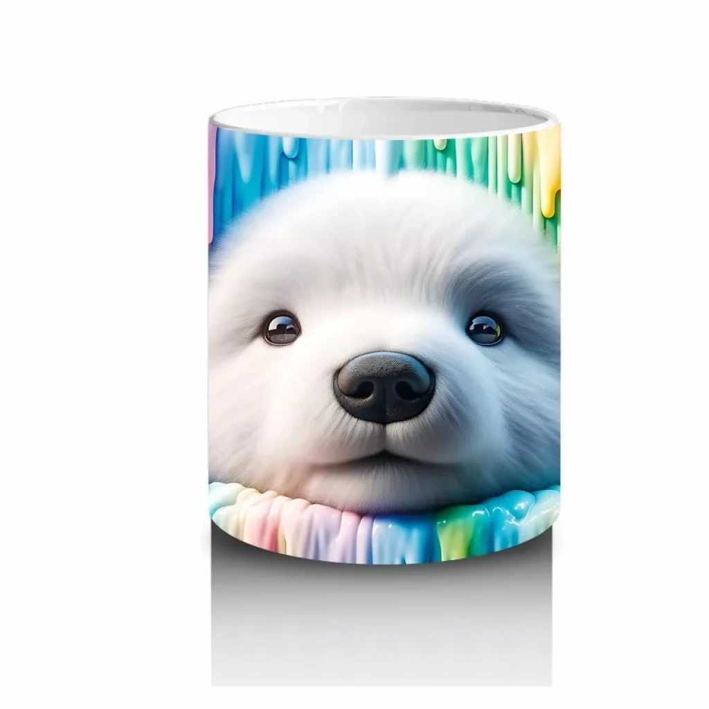 Renkli Erimiş Boyalar Arasında Yüzünü Uzatan Kutup Ayısı – Baskılı Kahve Kupası