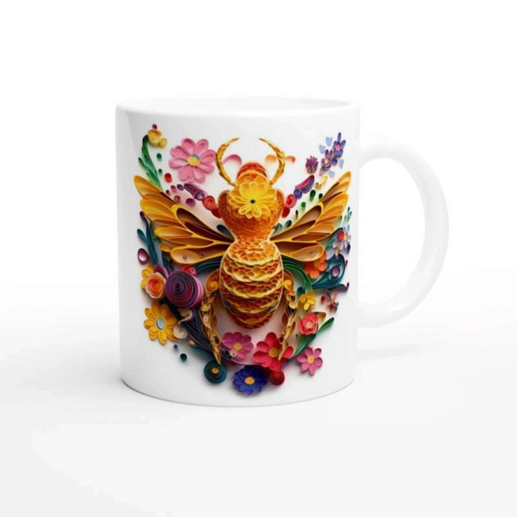 Sanat ve doğanın zarif dansı bu kupada buluşuyor! Canlı renkli kağıt kıvrımlarıyla işlenmiş arı ve çiçek desenleri, baharın enerjisini fincanınıza taşıyor. Her sabahı neşeyle karşılamak, iş yerinde masanızı renklendirmek ya da sevdiğinize anlamlı bir hediye vermek için harika bir tercih. Bu kupa sadece içecek taşımıyor; ruhunuzu da renklendiriyor!