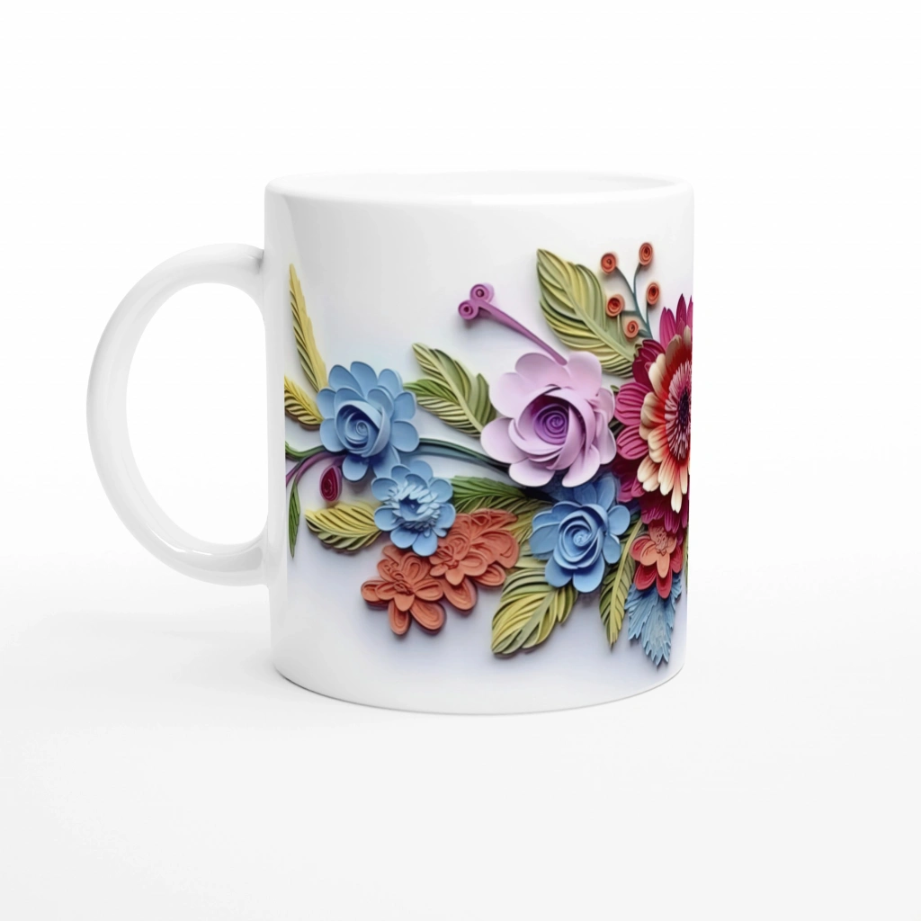Renkli Kağıt Çiçekler Kupa Bardak, mavi, pembe, mor ve turuncunun uyumunu barındıran neşeli tasarımıyla öne çıkıyor. Yaratıcı ve enerjik bir tarzı olanlar için hem günlük kullanım hem de hediye alternatifi olarak ideal.