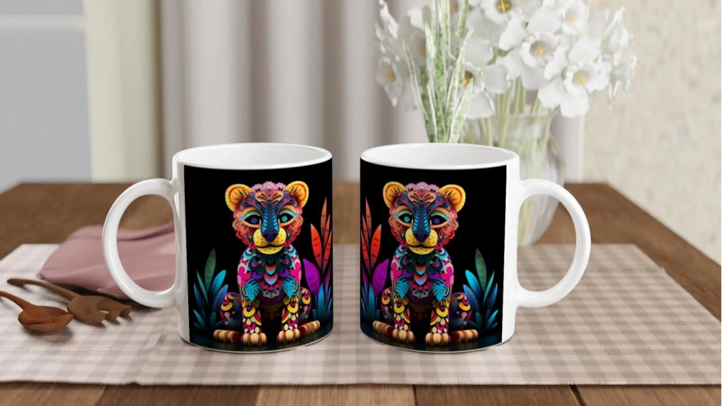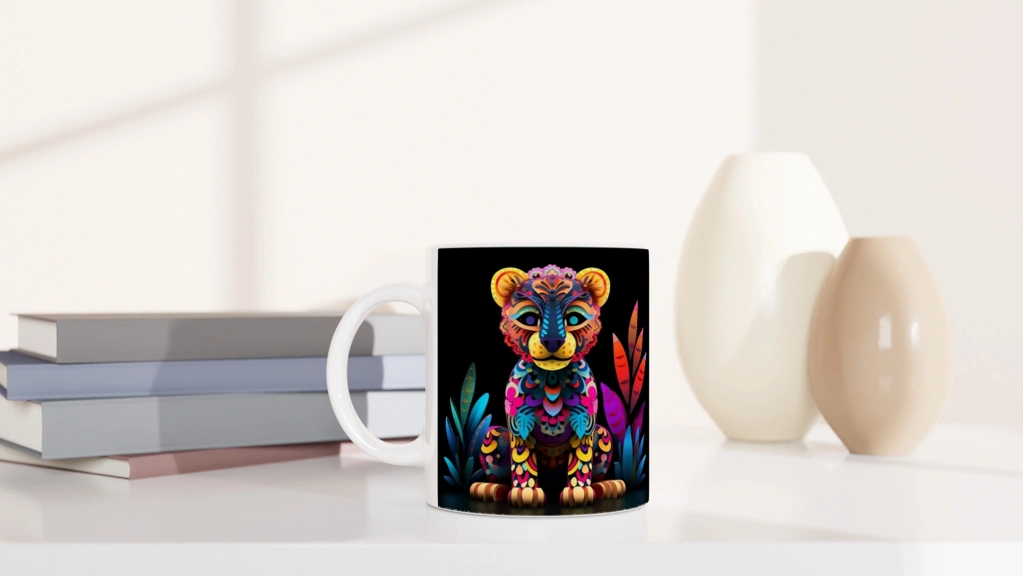 Canlı renklerin enerjisini ve doğanın vahşi zarafetini bir araya getiren bu leopar yavrusu kupa bardak,