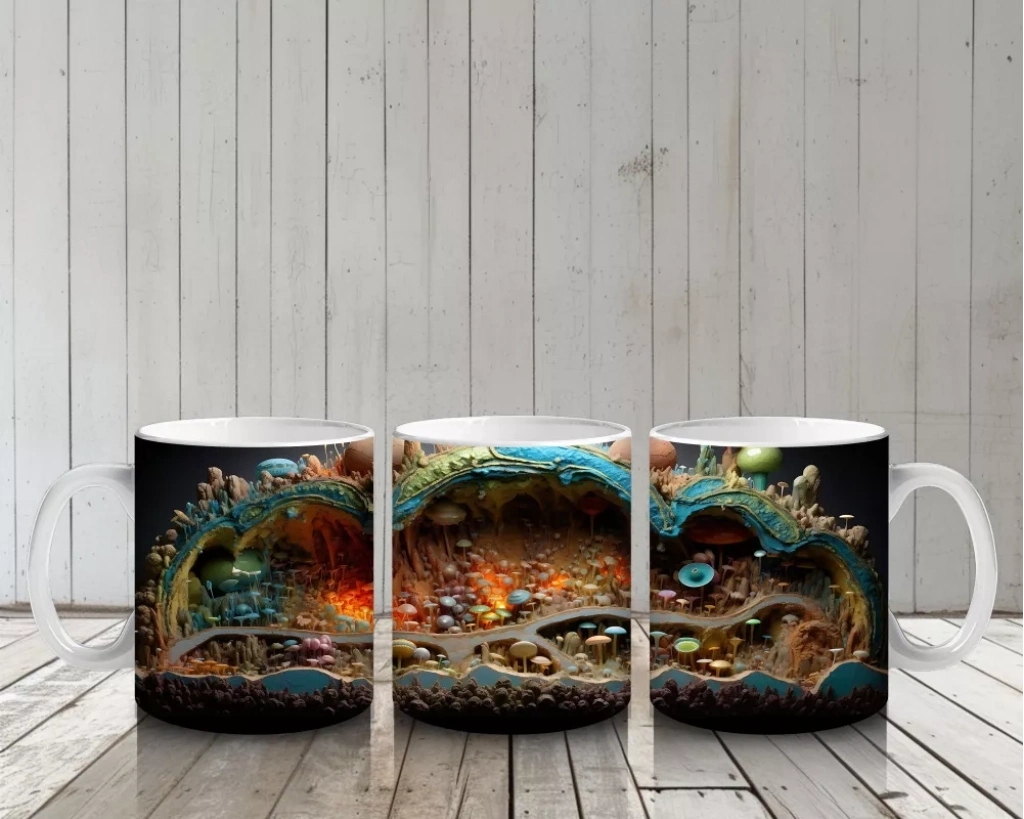 Hayal gücünü harekete geçiren bu fantastik tasarımda, renkli mantarlar ve kıvrımlı kökler gizemli bir yeraltı dünyasını oluşturuyor. Fantastik evrenleri sevenler için sıra dışı bir kupa deneyimi.