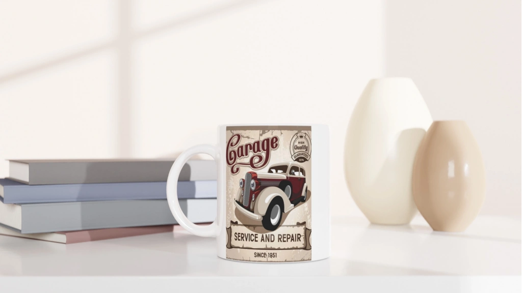 Retro Garage Servis Aracı Baskılı Kupa Bardak