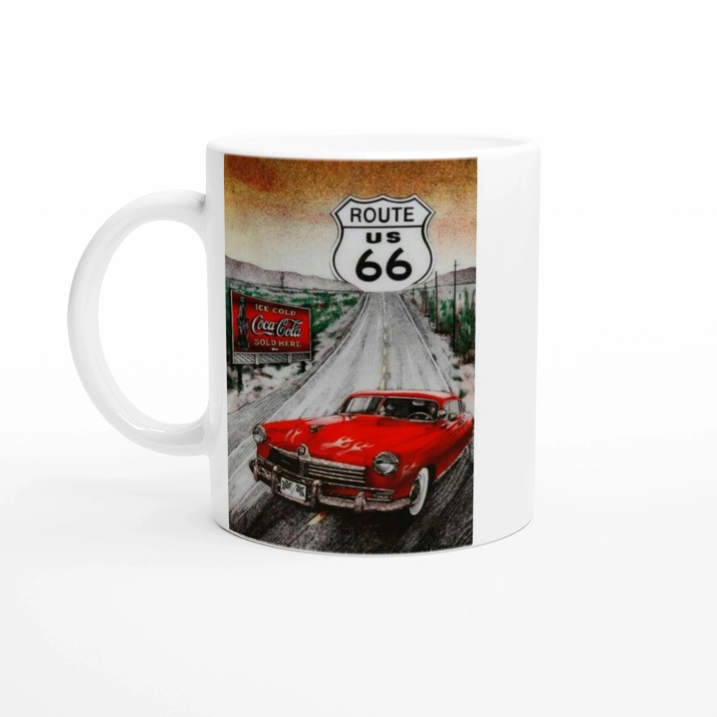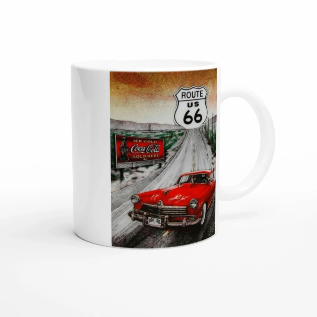 Route 66 Kırmızı Klasik Araba ve Coca Cola Temalı Kupa Bardak