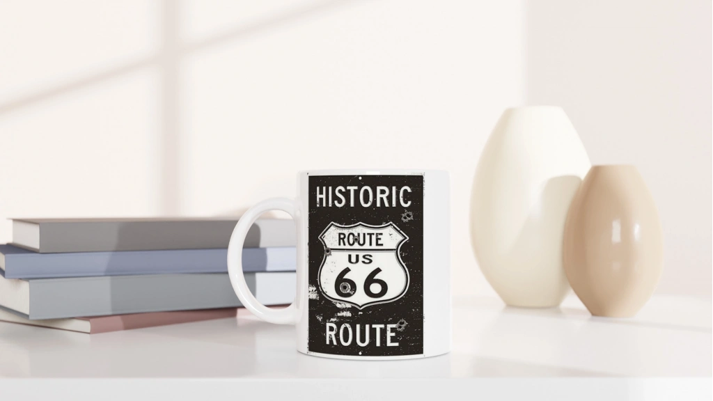 Historic Route 66 tabelasıyla süslenen bu özel kupa, nostaljik tasarımı sevenler ve yol hikayelerine tutkusu olanlar için harika bir hediye.