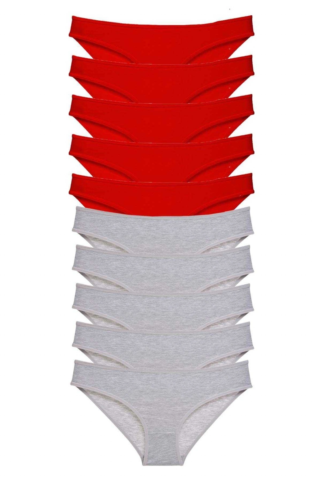 10 adet Süper Eko Set Likralı Kadın Slip Külot Kırmızı Gri