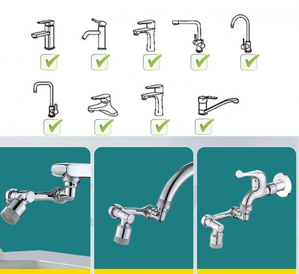 1080 Derece Dönebilen Robotik Kol Musluk Başlığı - Musluk Uzatma Aparatı Ucu