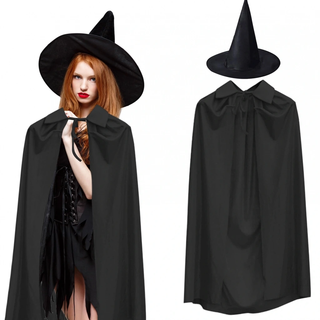 120 Cm Siyah Yakalı Pelerin Ve Siyah Cadı Şapkası Kostüm Seti