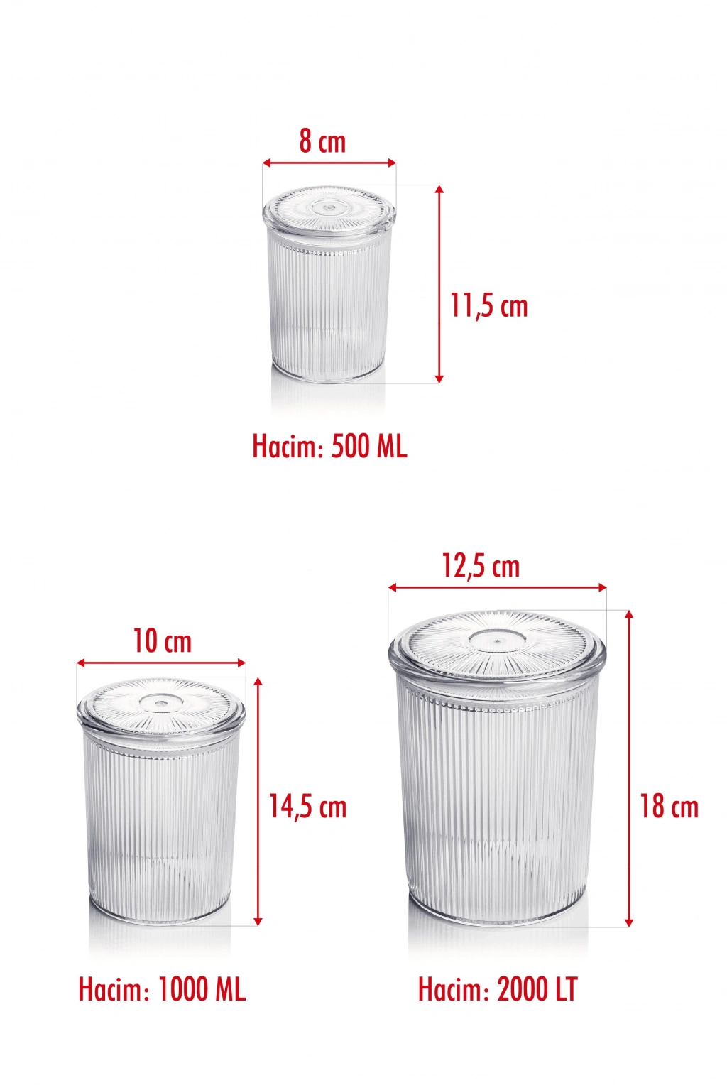 Erzak veya depolamak istediğiniz her ürünü saklamak için 4'lü 3 farklı boydan oluşan estetik akrilik kavanoz seti depolama yapmak için en ideal tercihiniz olacak.