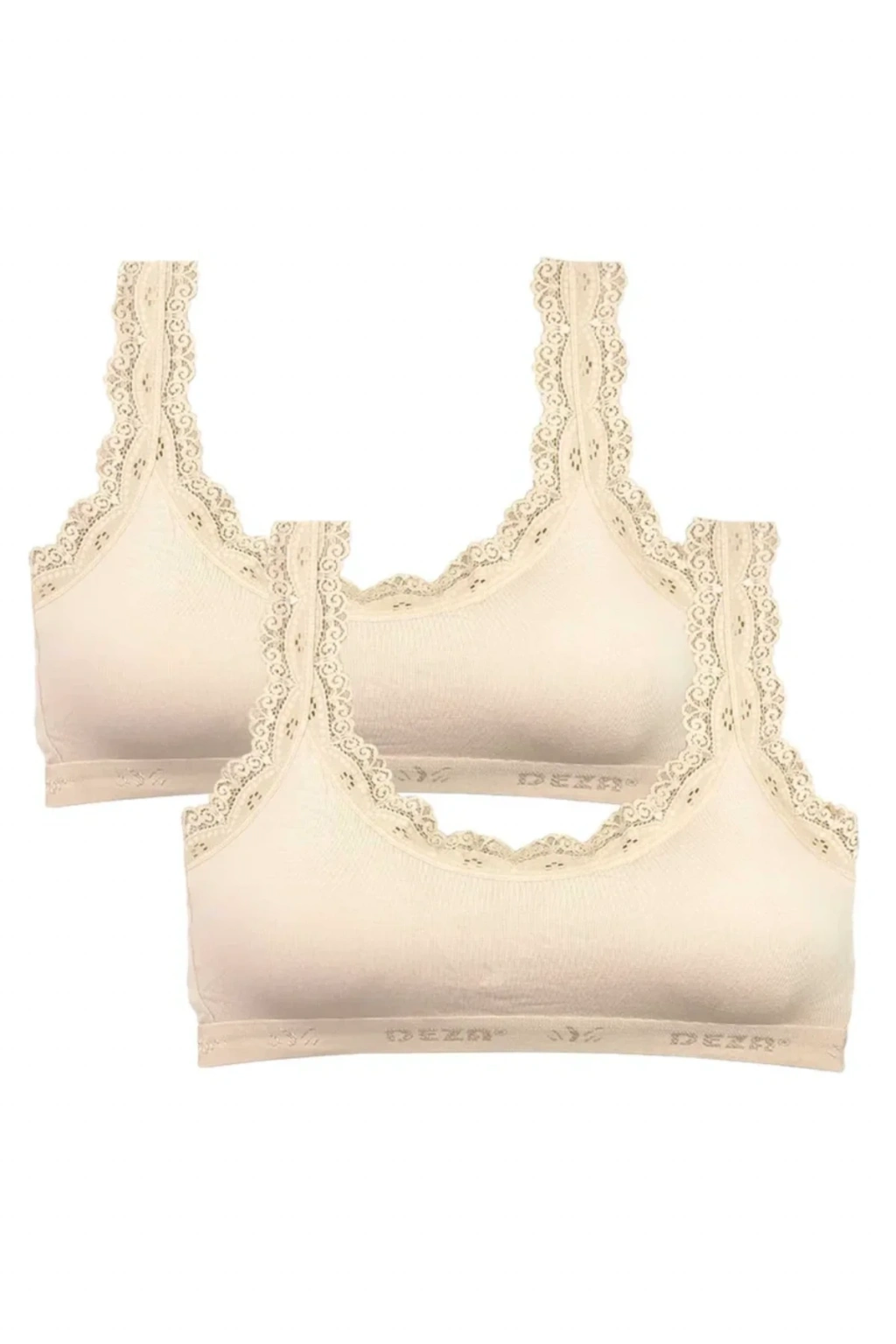 2 Adet Dantel Nakış İşlemeli Pedli Bambu Kadın Büstiyer Krem