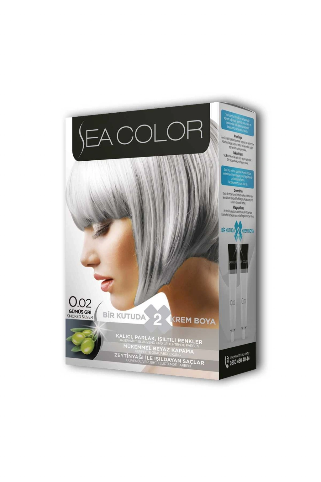 Sea Color 2 tüp Krem Saç Boyası Seti Gümüş Gri No:0.02