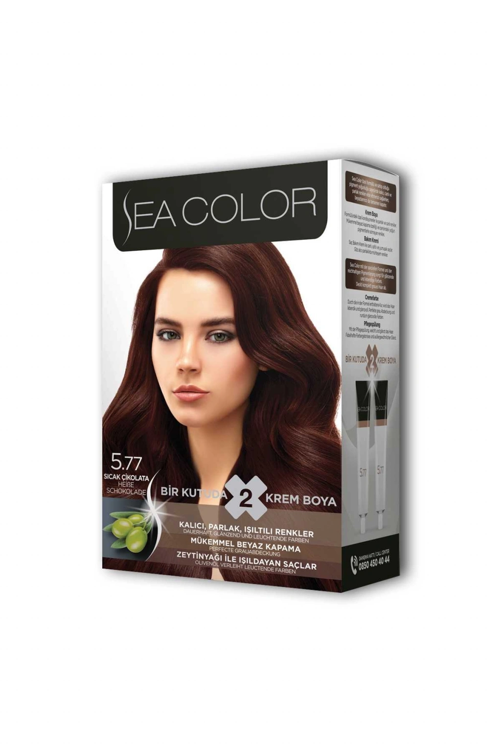 Sea Color 2 tüp Krem Saç Boyası Seti Sıcak Çikolata No:5.77
