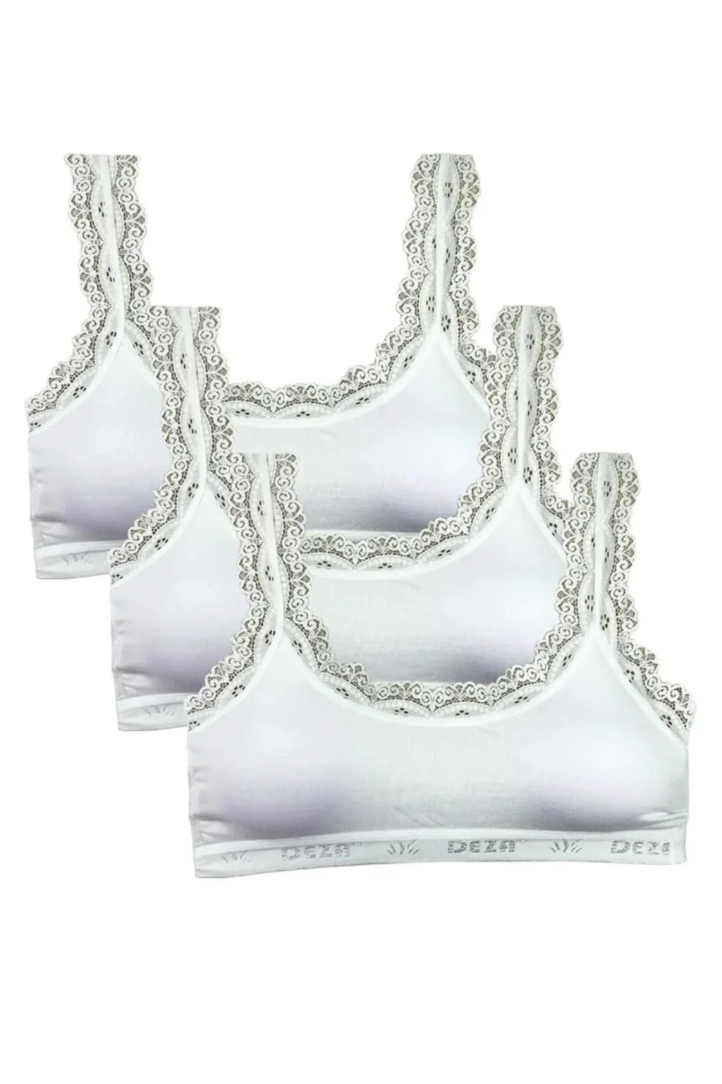 3 Adet Dantel Nakış İşlemeli Pedli Bambu Kadın Büstiyer Beyaz