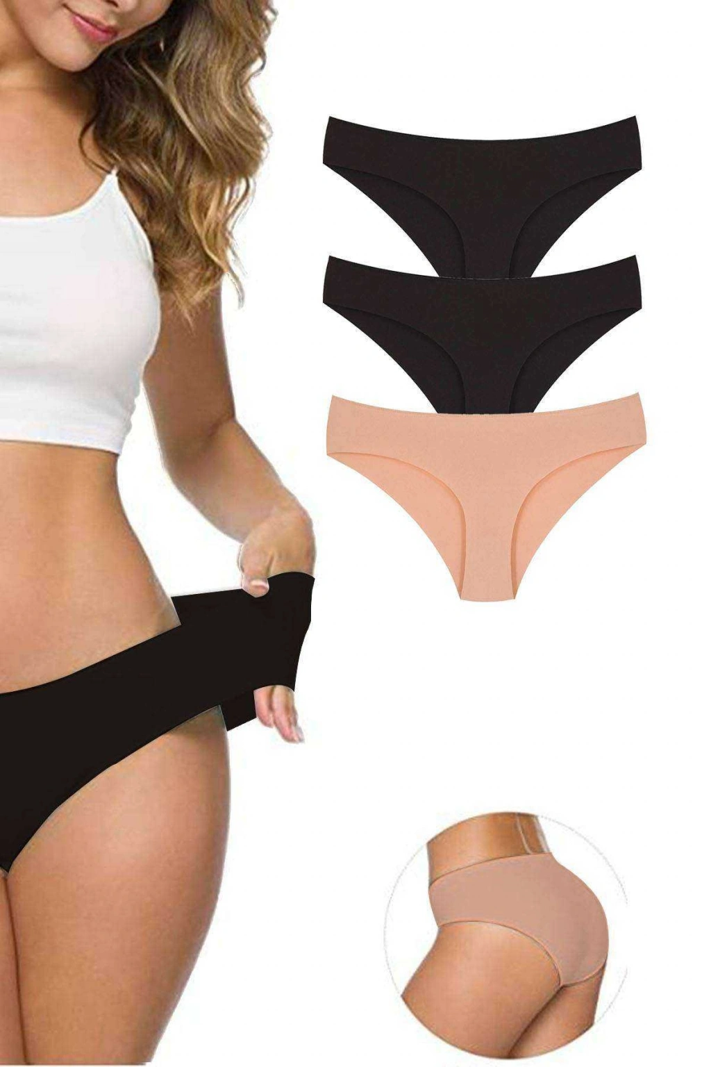 3 Adet Kadın Dikişsiz Lazer Kesim Esnek İz yapmayan Külot Siyah Ten