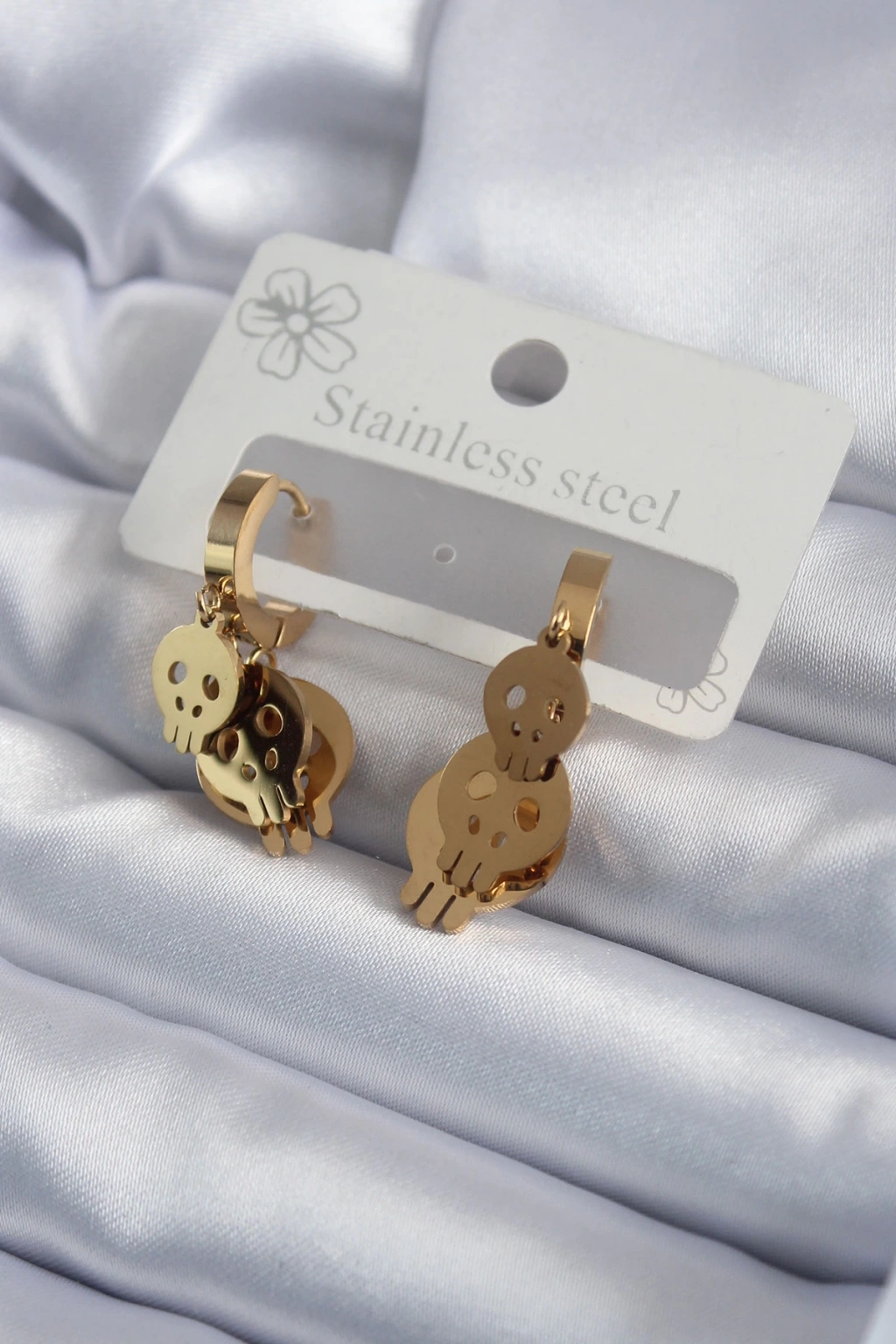 316L Çelik Gold Renk Sallantı Kuru Kafa Model Kadın Küpe