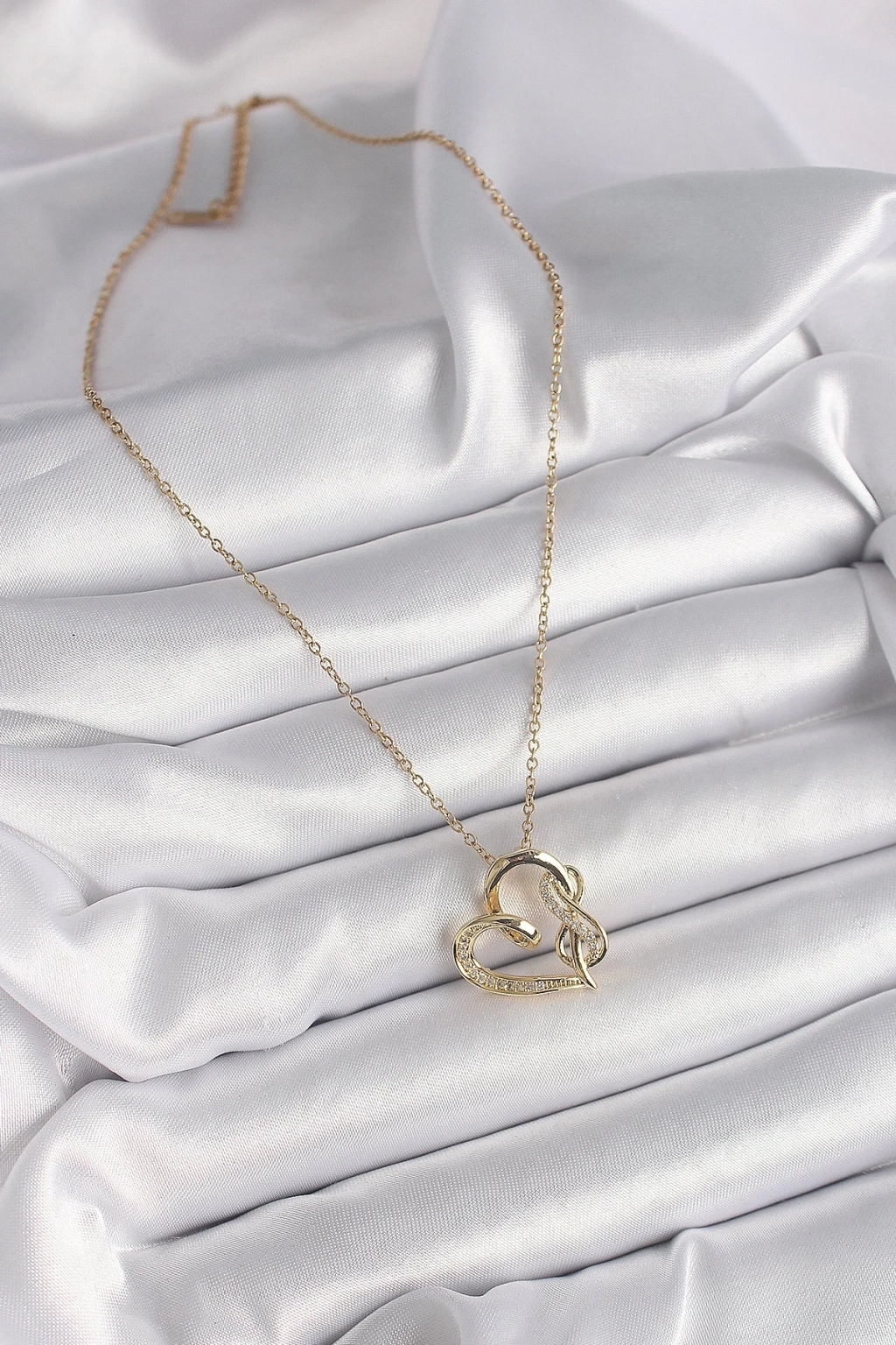 316L Çelik Gold Renk Zincir Zirkon Taş Detaylı Kalp Model Sonsuzluk Detay Kadın Kolye