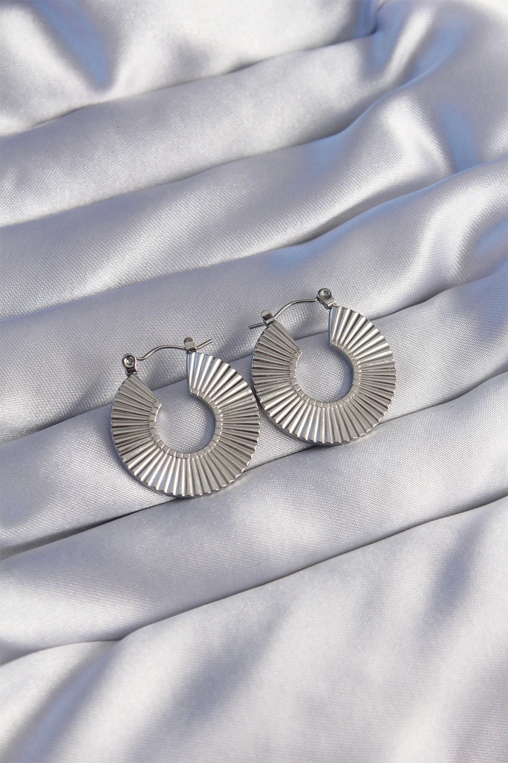316L Çelik Gümüş Renk Oval Çizgili Plaka Küpe