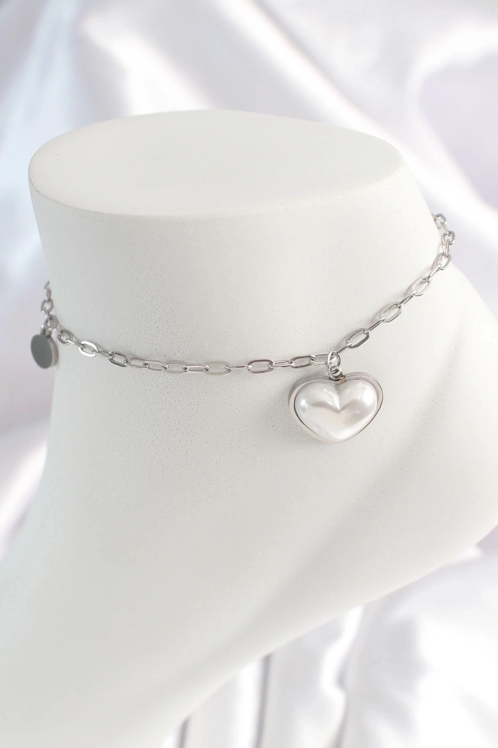 316L Çelik Gümüş Renk Kalp Figür Kadın Halhal