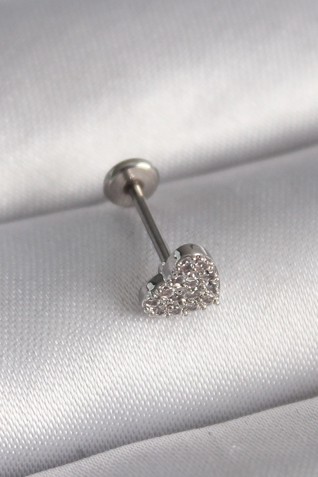 316L Çelik Gümüş Renk Zirkon Taşlı Kalp Model Tragus Piercing