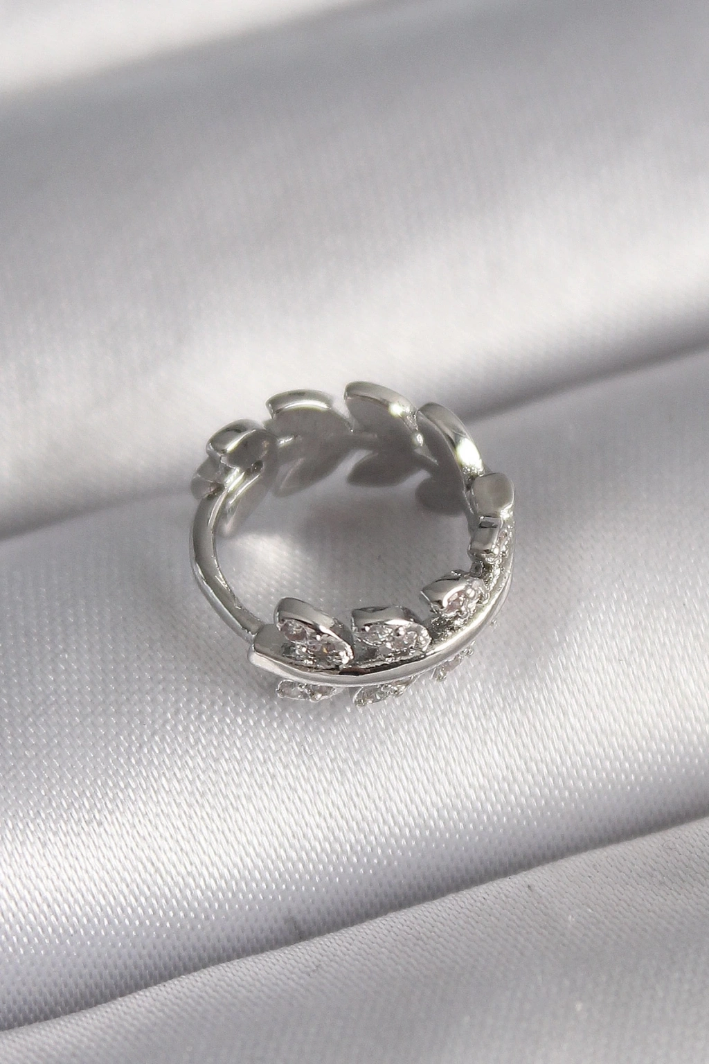 316L Çelik Gümüş Renk Zirkon Taşlı Yaprak Model Tragus Piercing